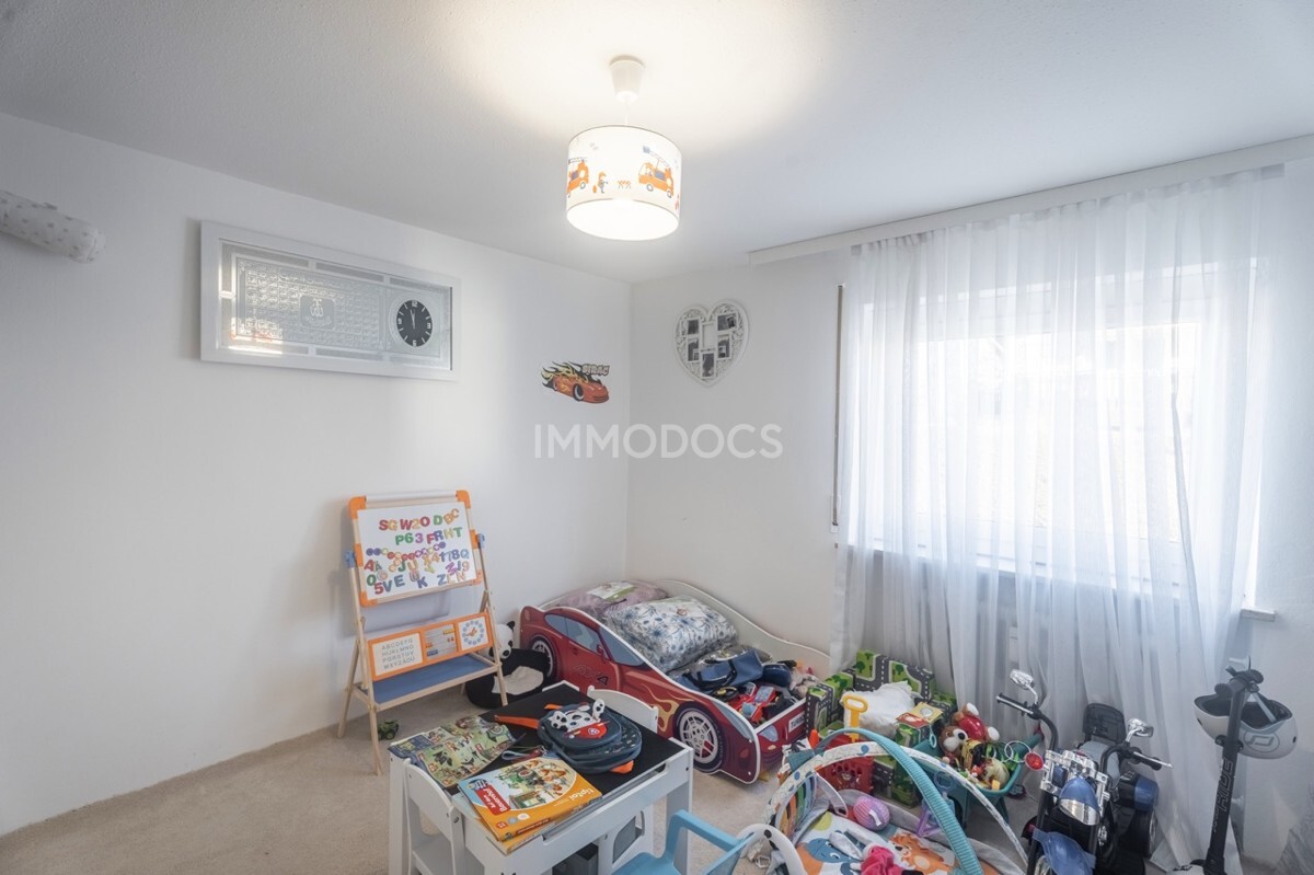 Diese helle und freundliche Eigentumswohnung befindet sich in einem gepflegten 6-Parteien-Haus aus dem Jahr 1974. Das großzügige Wohnzimmer mit großen Fensterflächen bietet eine lichtdurchflutete, einladende Wohnatmosphäre. Ein Schlafzimmer und ein Kinderzimmer sorgen für individuelle Rückzugsmöglichkeiten, während die voll ausgestattete Küche zum kulinarischen Genuss einlädt.